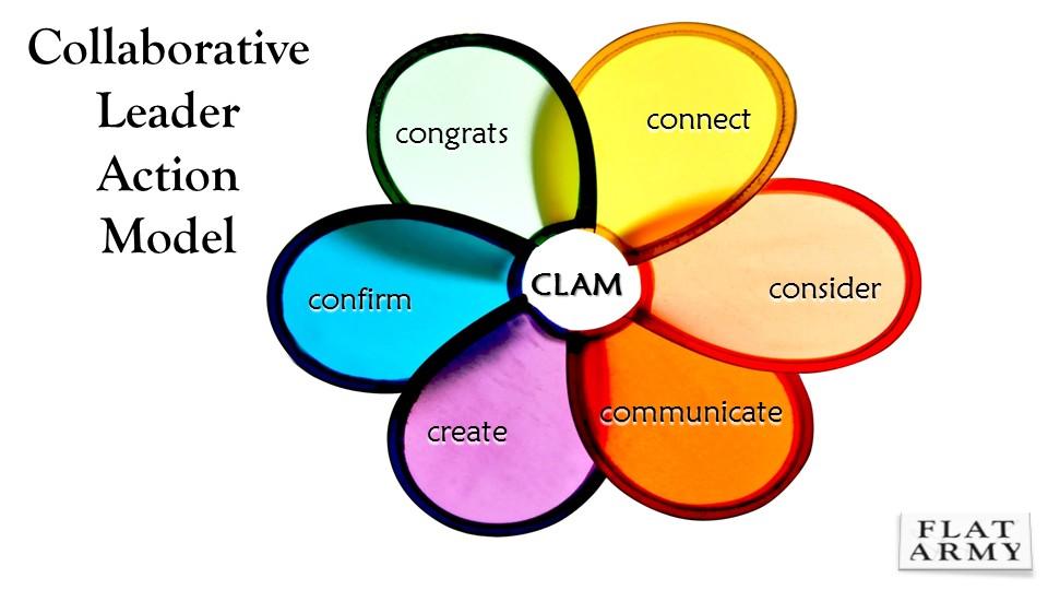 For teams and organizations to collaborate more effectively, I have discovered in my research and interviews that there are two key actions that have to occur before anything else: Connect and Consider. They are the first two stages of the Collaborative Leader Action Model (CLAM) that I outlined in my first book, FLAT ARMY.