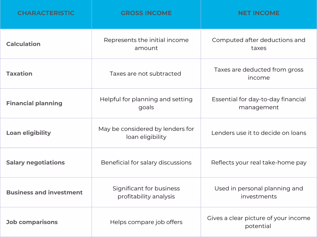 - Real spending power: Net income reflects what remains after taxes and deductions. It represents the funds at your disposal for daily expenses and savings.